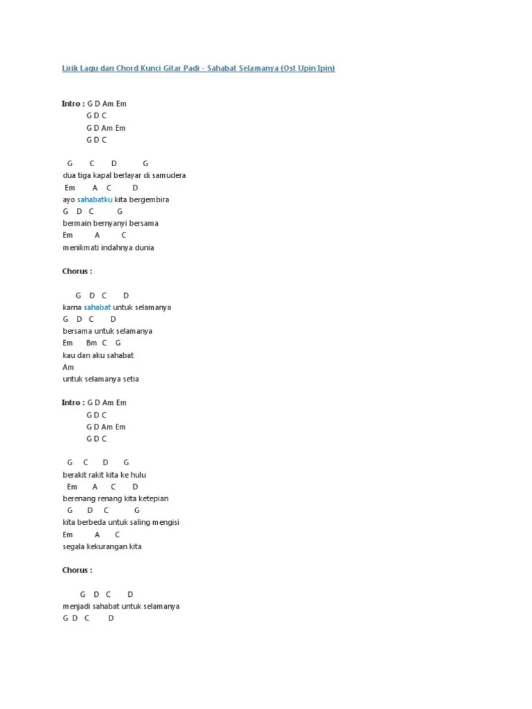 Ini chord kunci gitar dan lirik lagu band padi yang berjudul sahabat selamanya 'karna sahabat untuk.